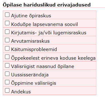 Praegu on haridusmaailmas üsna kitsas arusaamine erinevustest. Näiteks EHISes on võimalik õpilasele märkida sellised erivajadused: